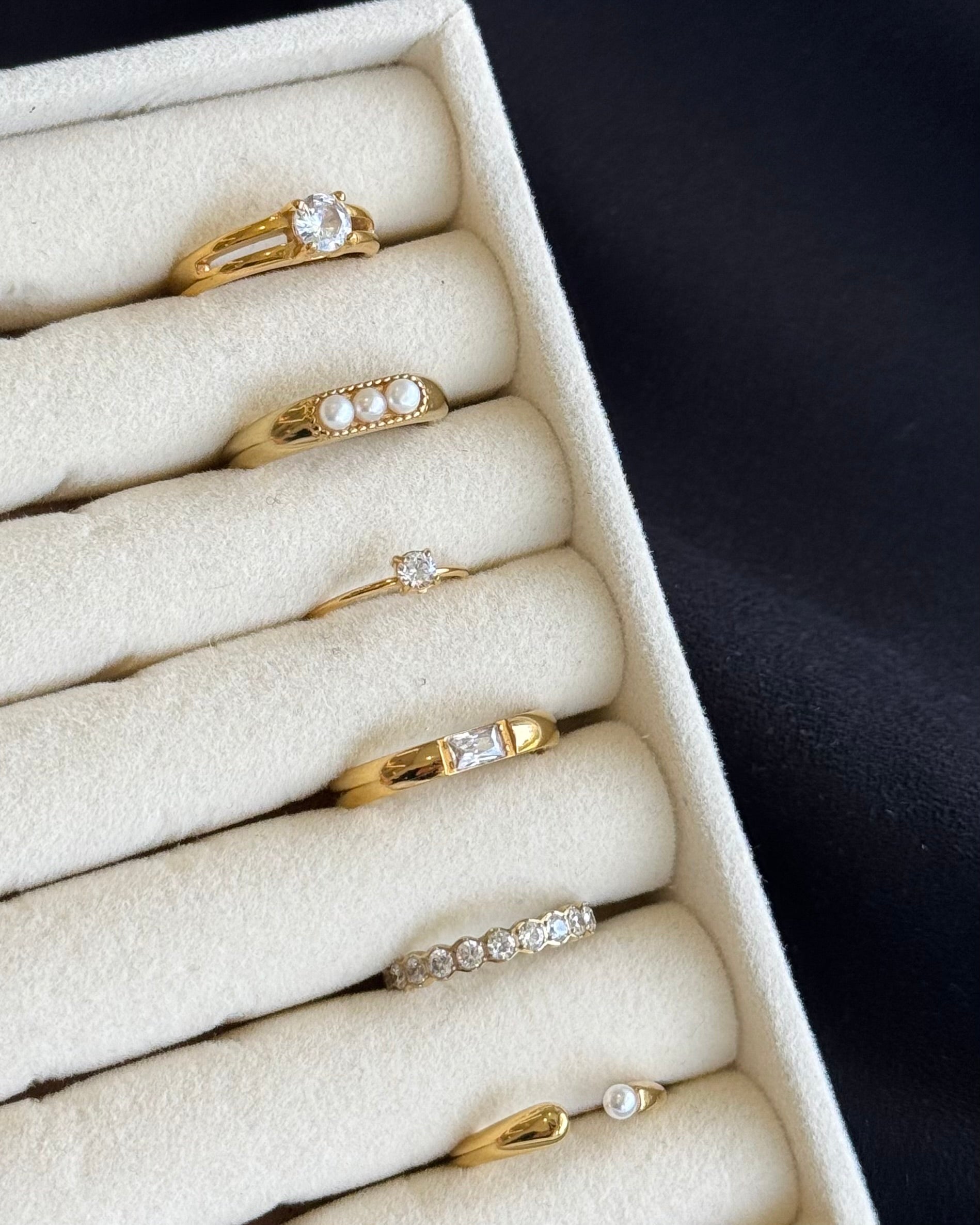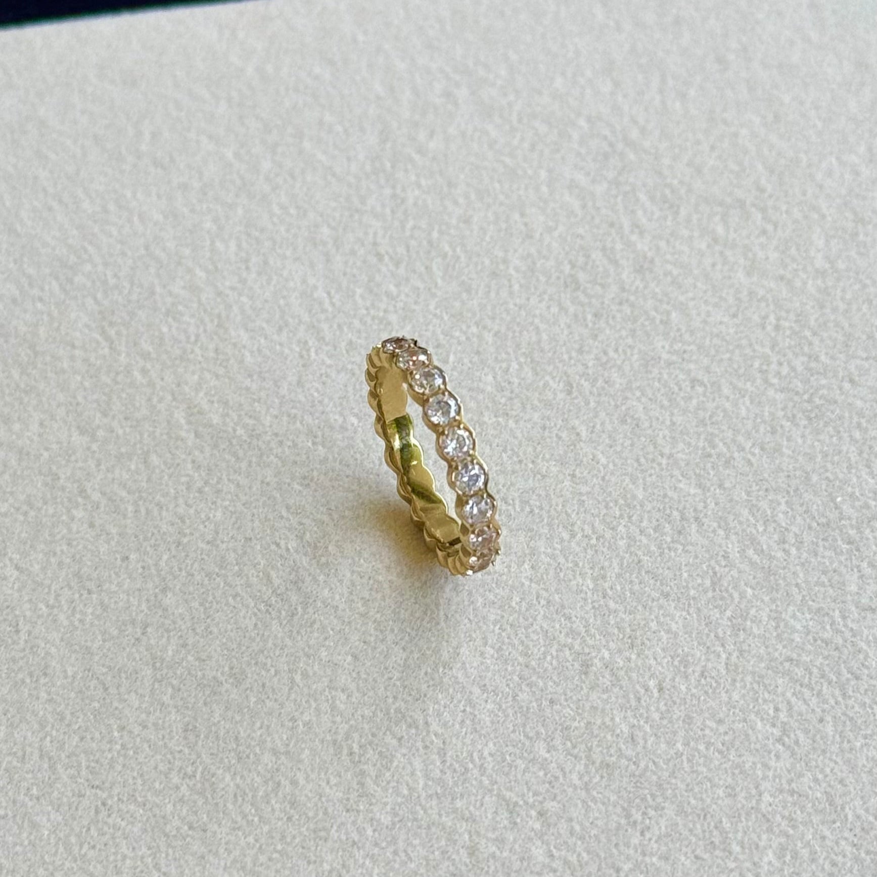 - Ring with a gold structure with cubic zirconia stones set around the entire ring, the inner Leo has a wavy finish.