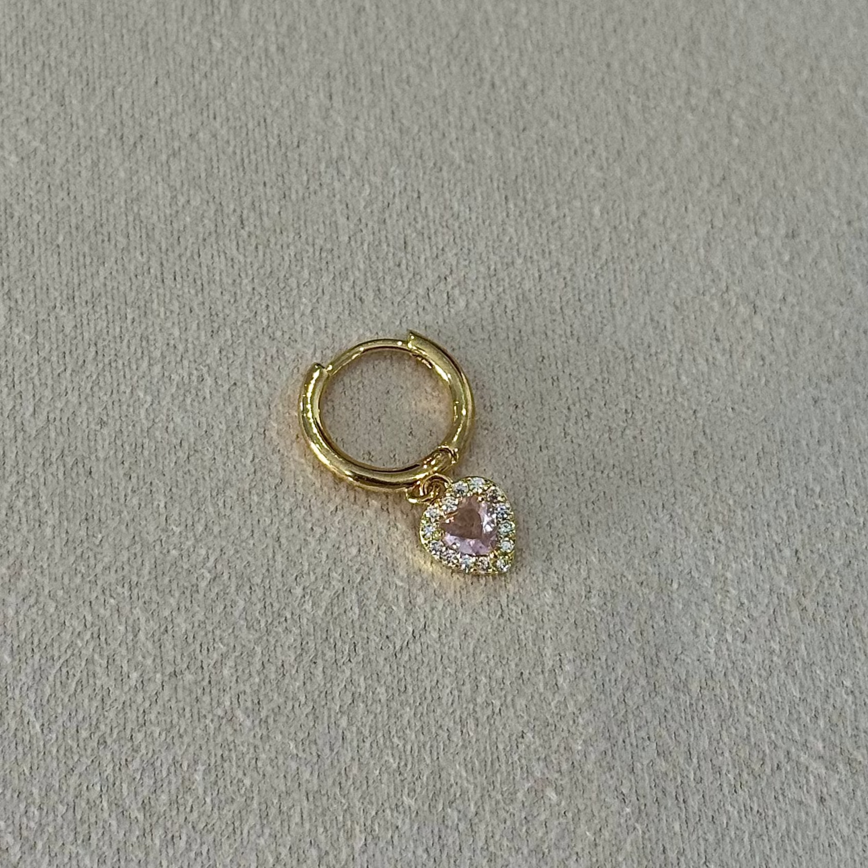 -Ring with click closure, with a baby pink heart-shaped zircon, surrounded by small silver-set zircons.