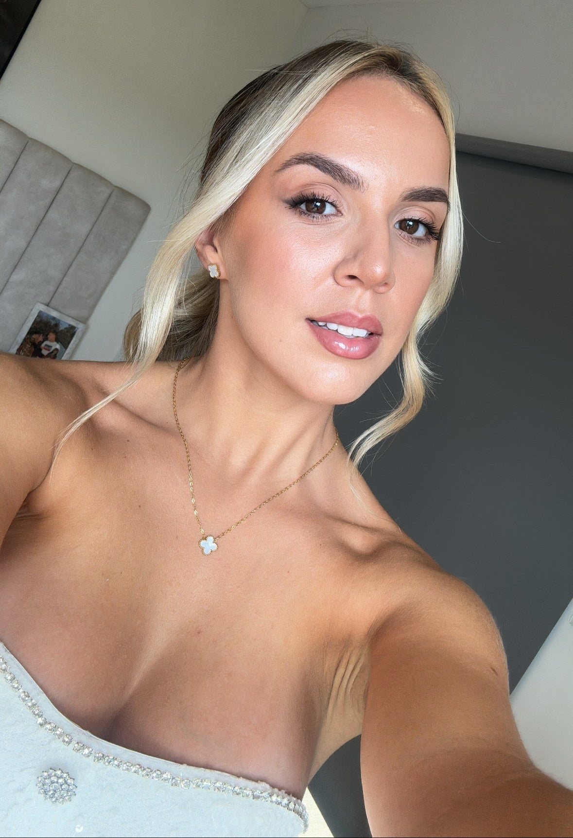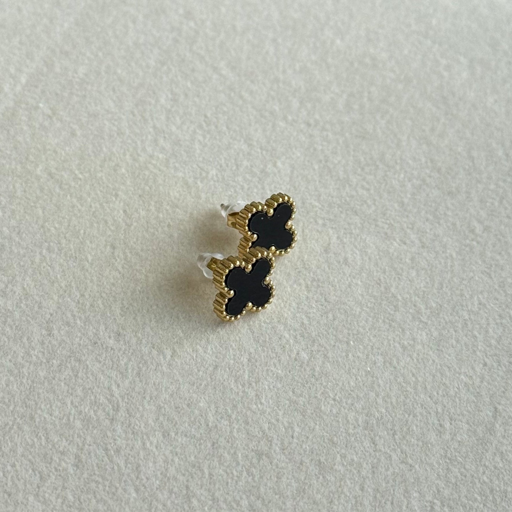 -Clover-shaped earrings, with embossed contour worked with meticulous detail finishing, back with butterfly pin clasp.