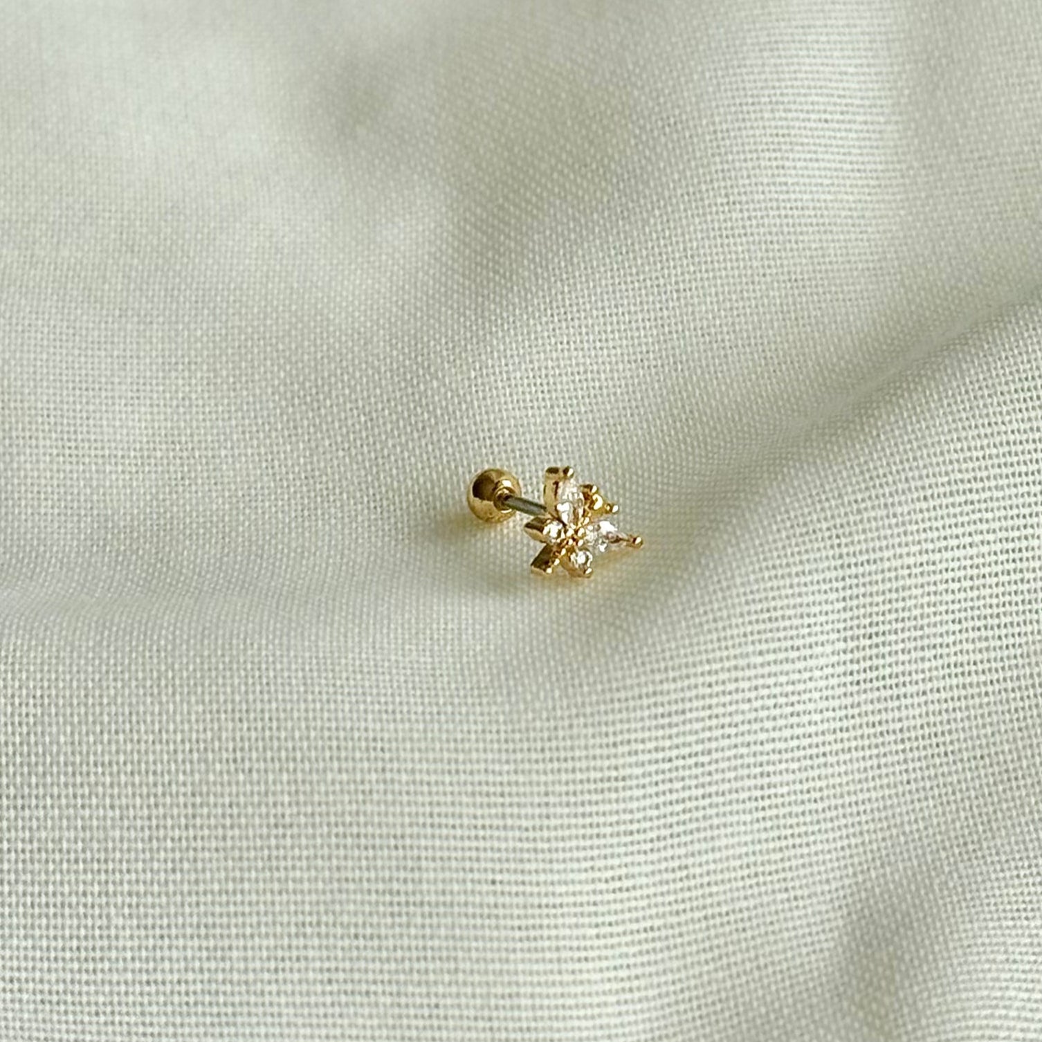 -Butterfly shaped piercing with studded diamonds, rotating ball clasp.