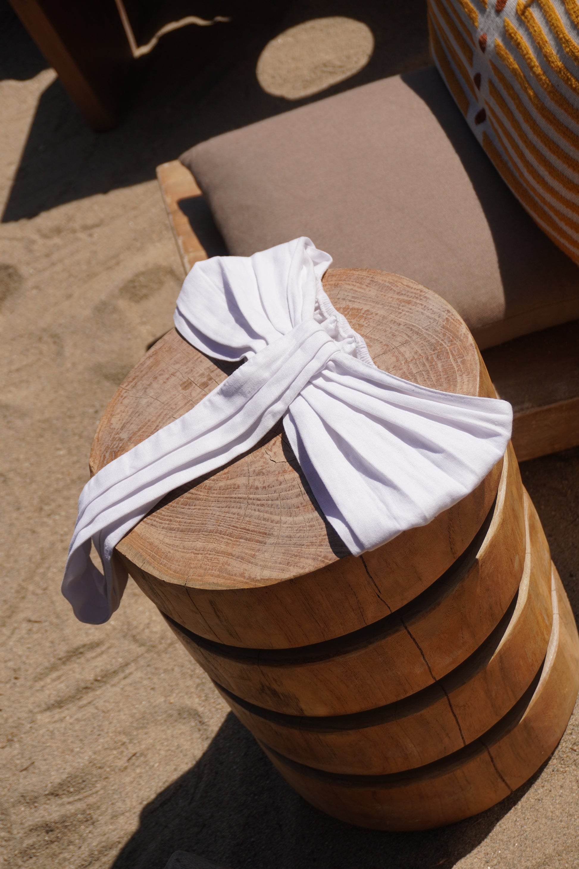 The distinctive design features a wide, asymmetrical strap that elegantly crosses the neckline, creating a sculptural, contemporary effect. The underband gently adjusts to the body thanks to the discreet elastic at the back, providing a perfect fit without showing or pinching.